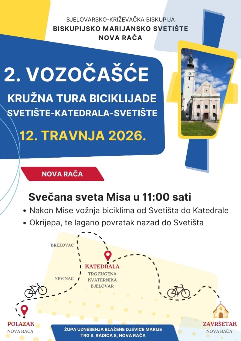 Susret započinje svetom Misom u 11 sati u Svetištu, a nakon svete Mise u 12.30 krećemo prema središtu naše Biskupije, prema katedrali. Nakon kratke okrijepe u Bjelovaru slijedi povratak prema Svetištu.