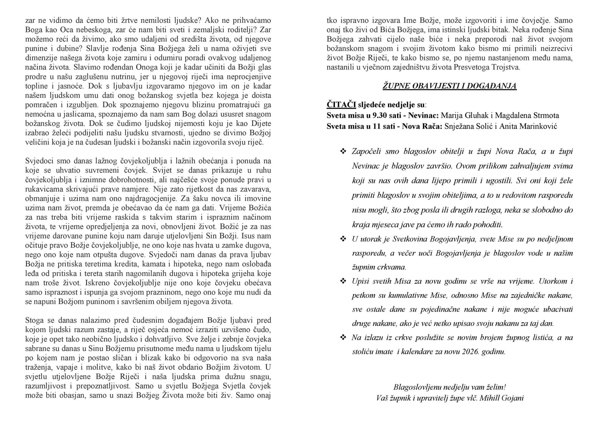 Živjeti od Božje ljubavi, živjeti od radosti Božića i rođenja Sina Božjega izvor je i našega života. Blagoslovljenu nedjelju želim!