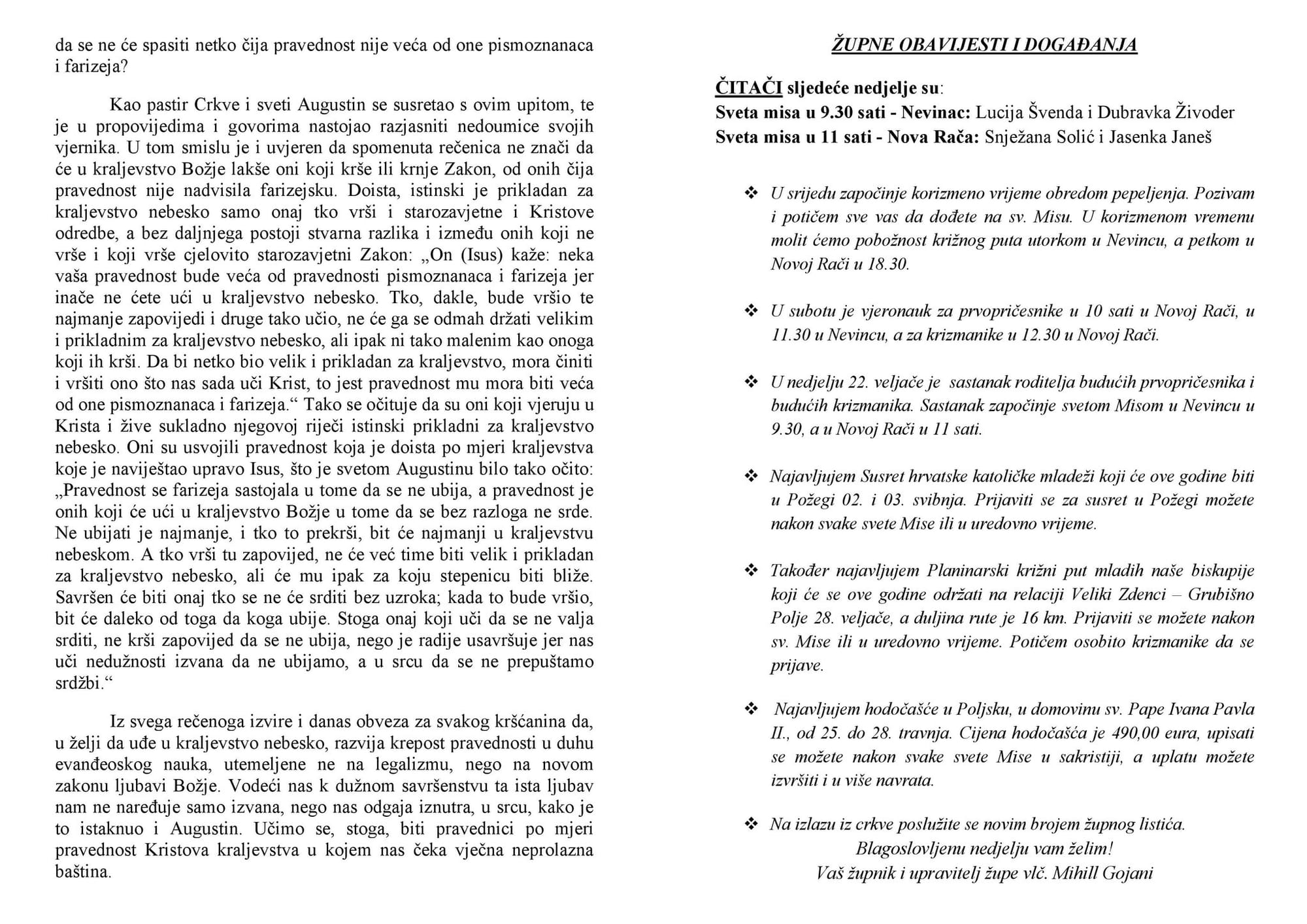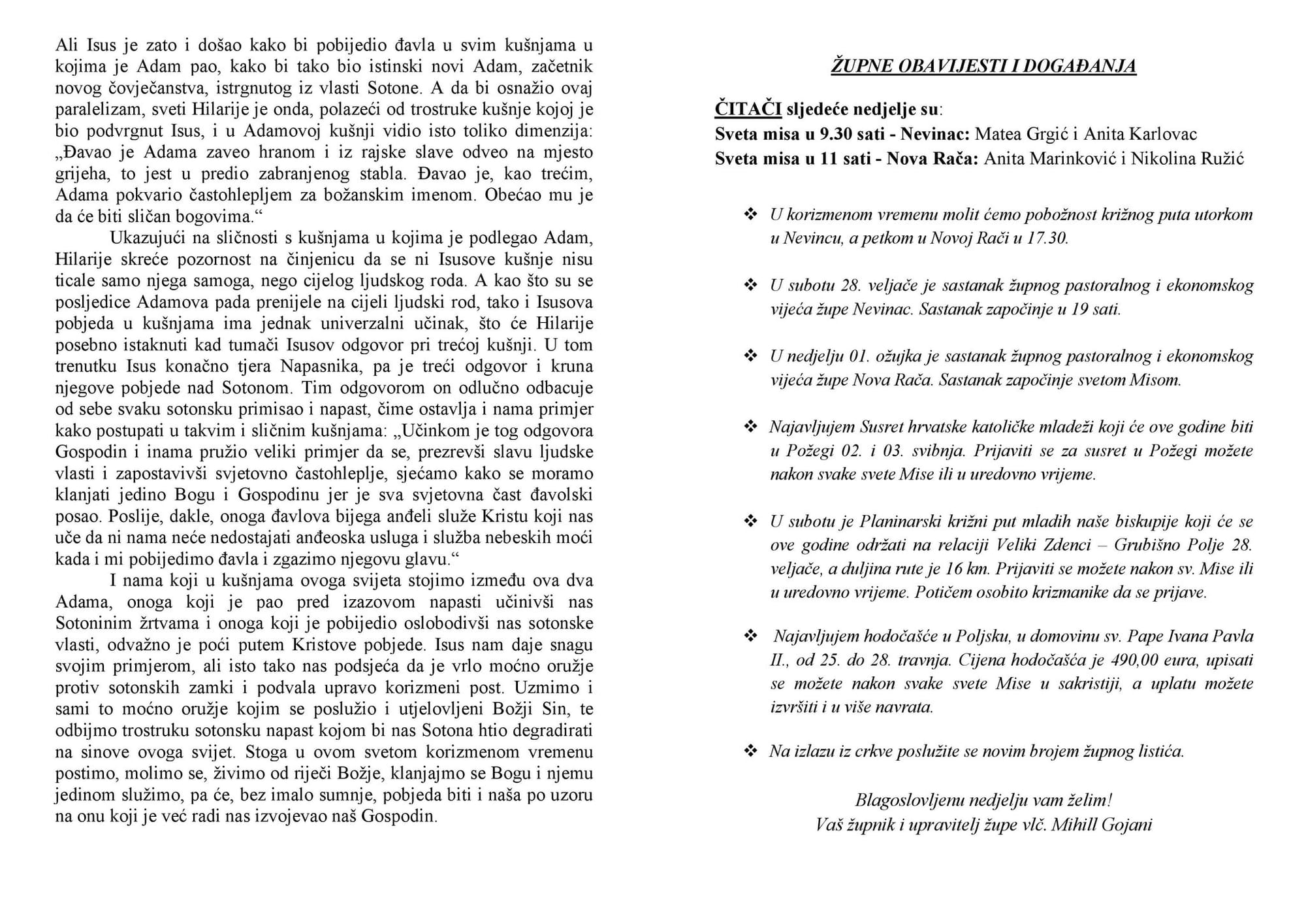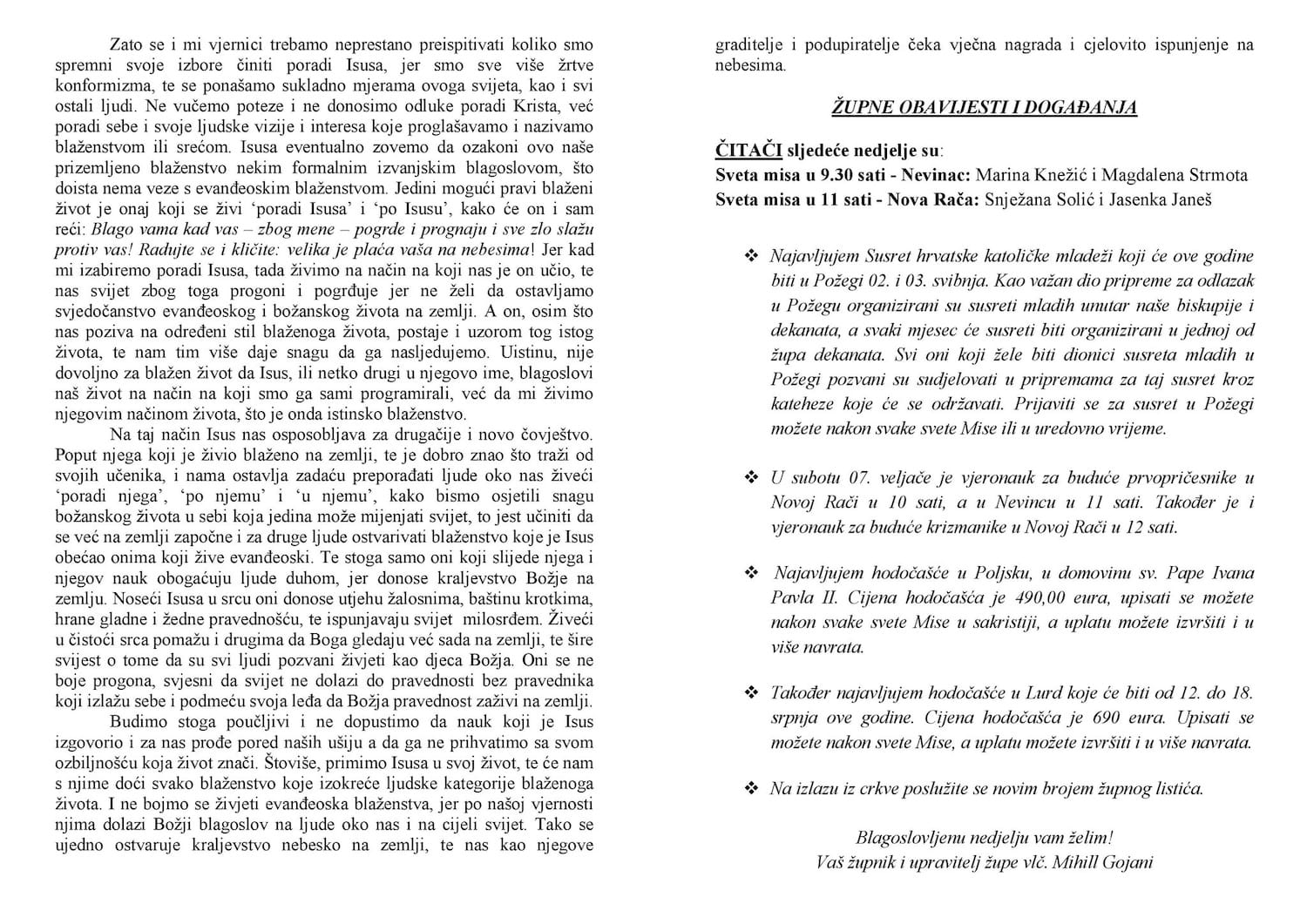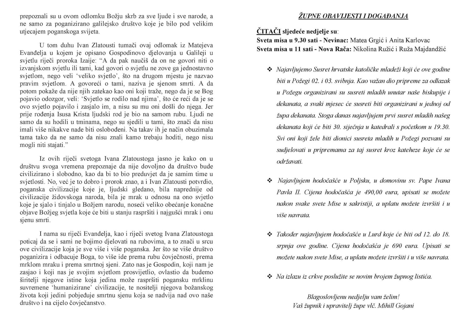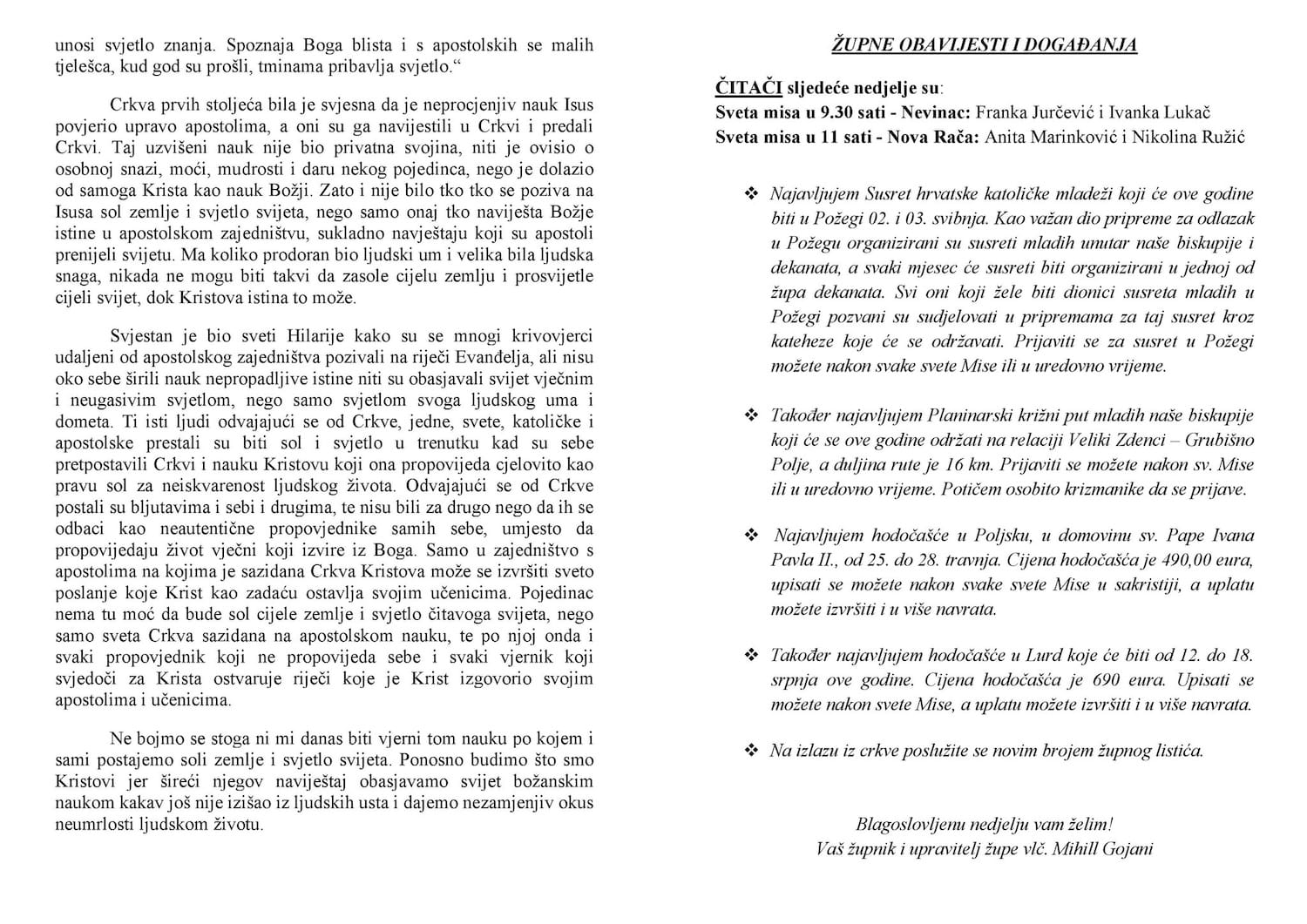 Župne obavijesti - listić