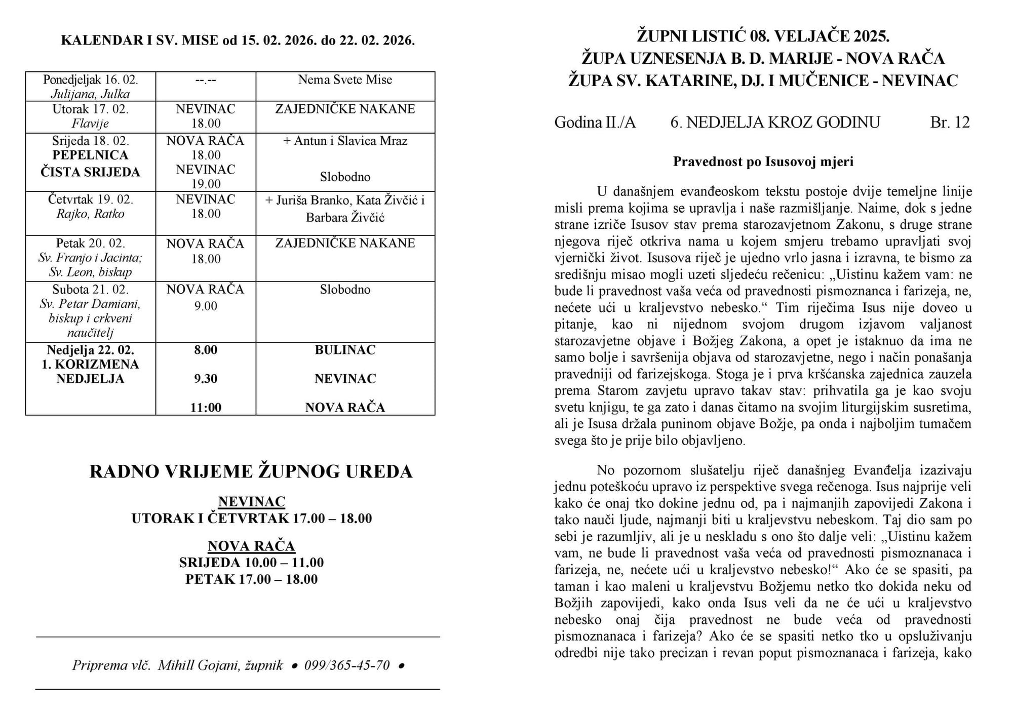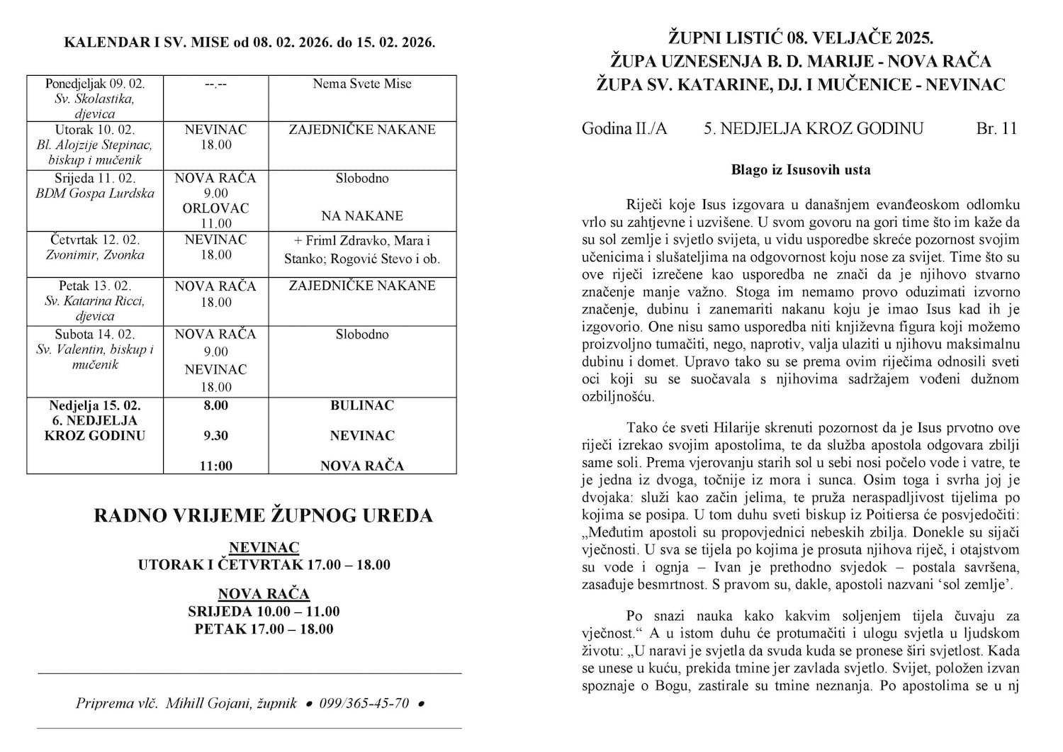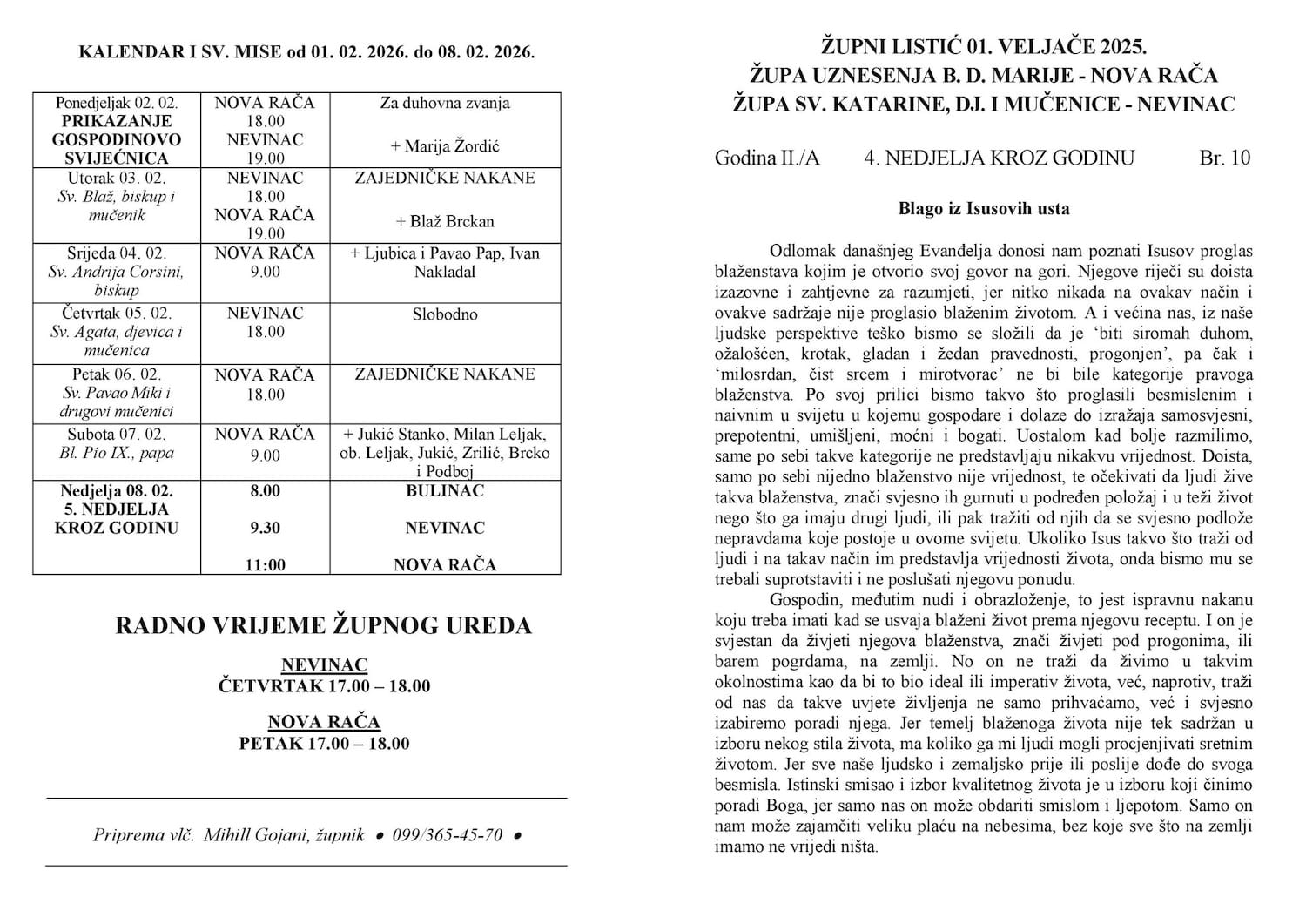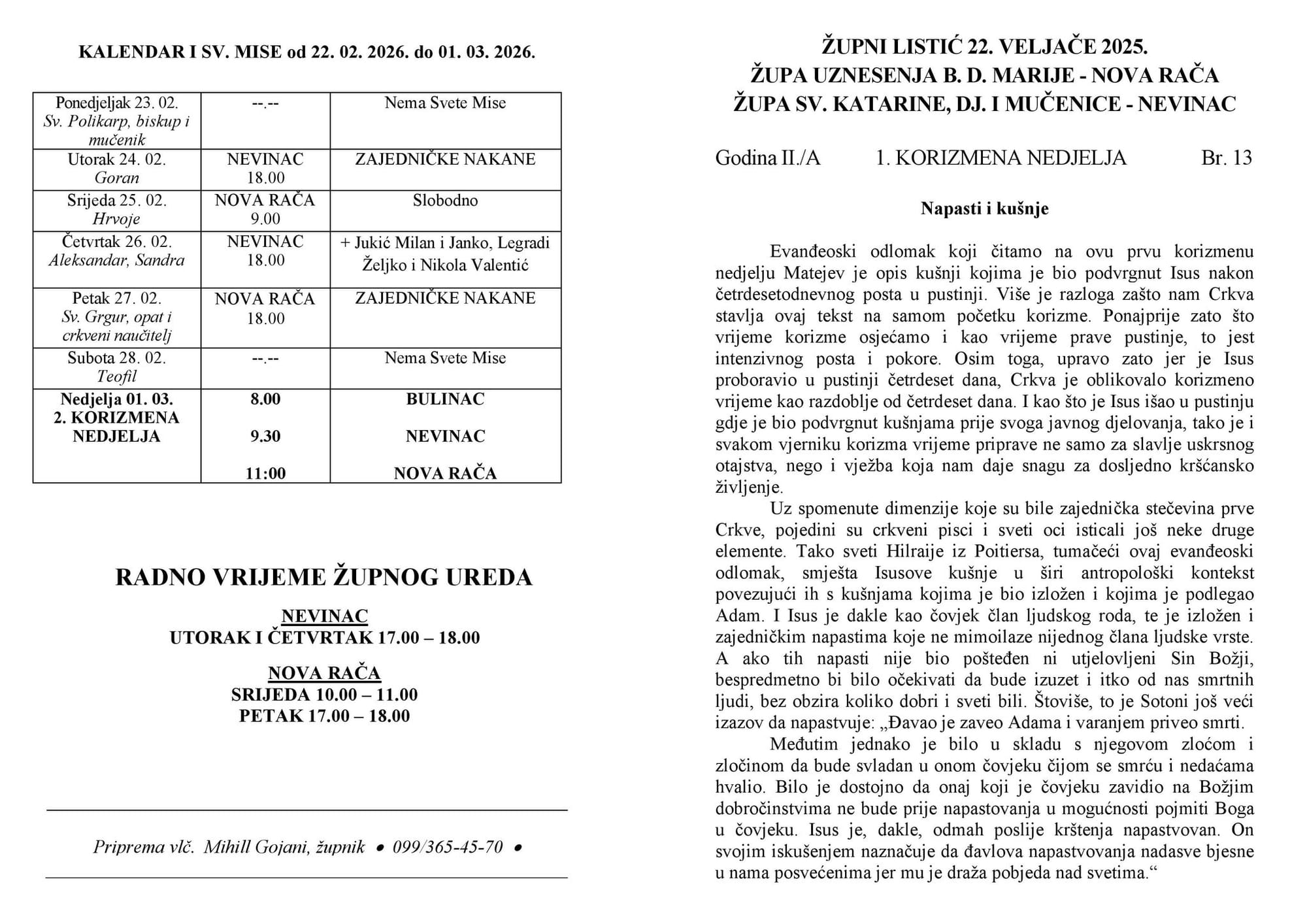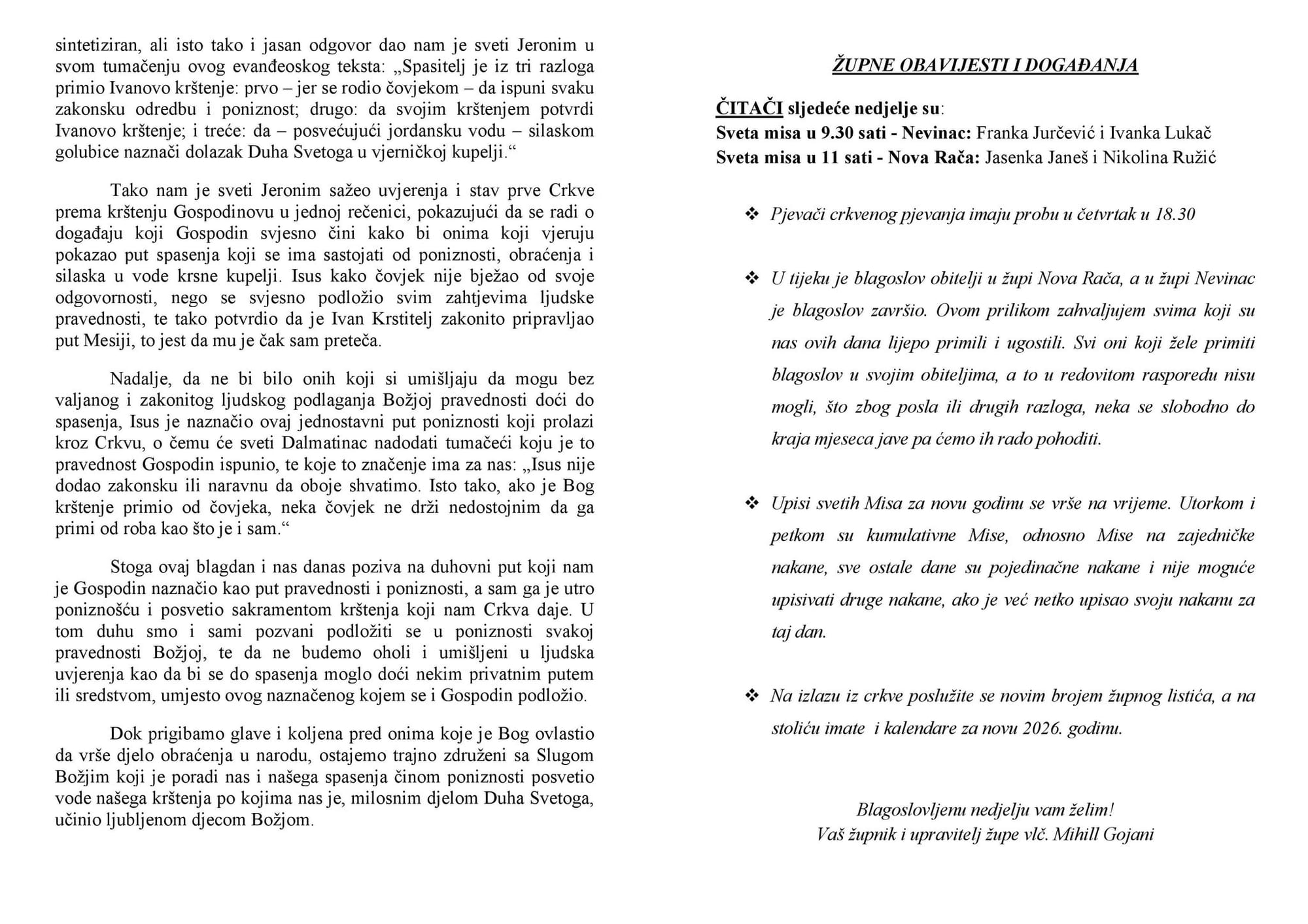 Župne obavijesti - listić