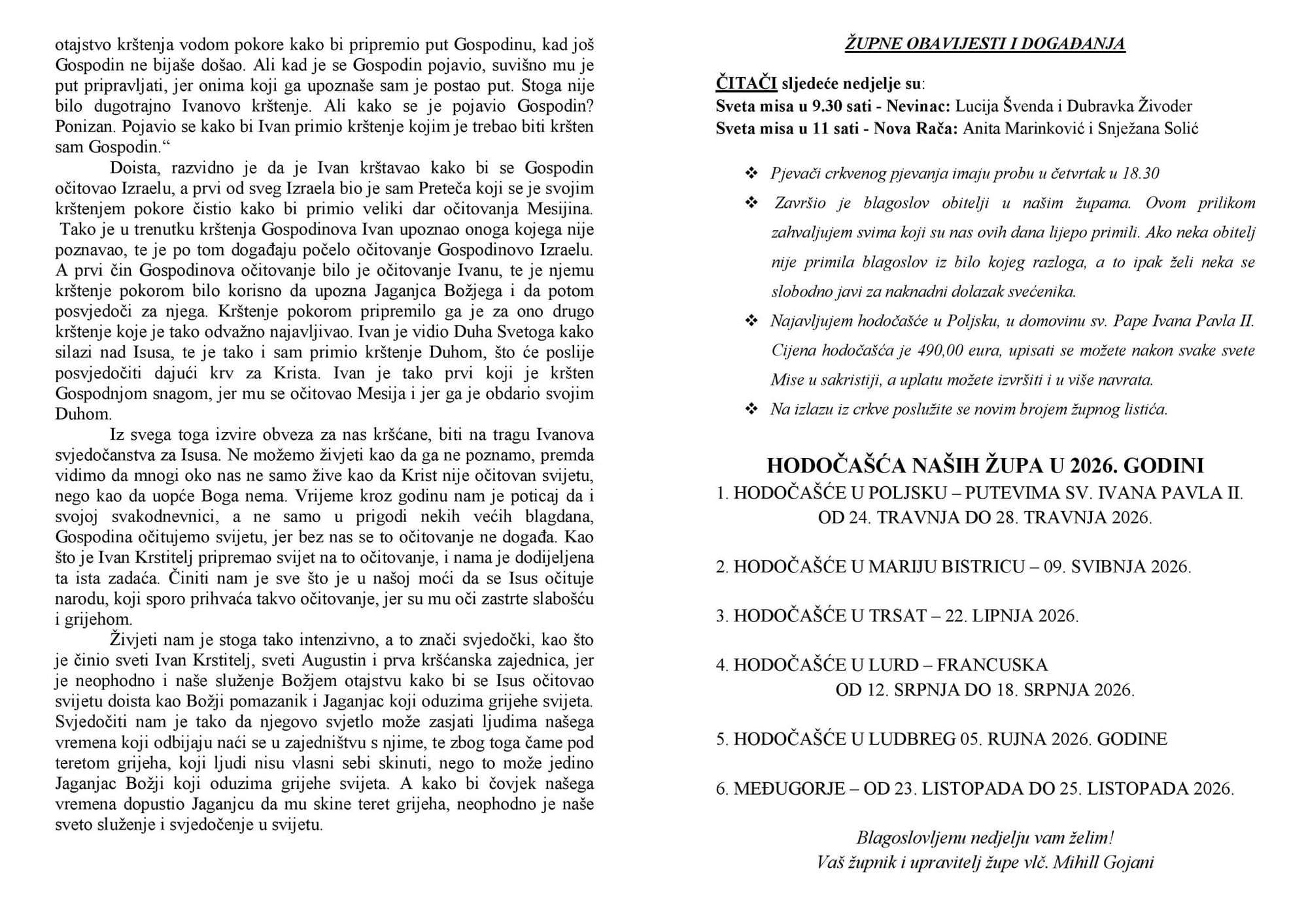 Najava svih Hodočašća kroz 2026. godinu